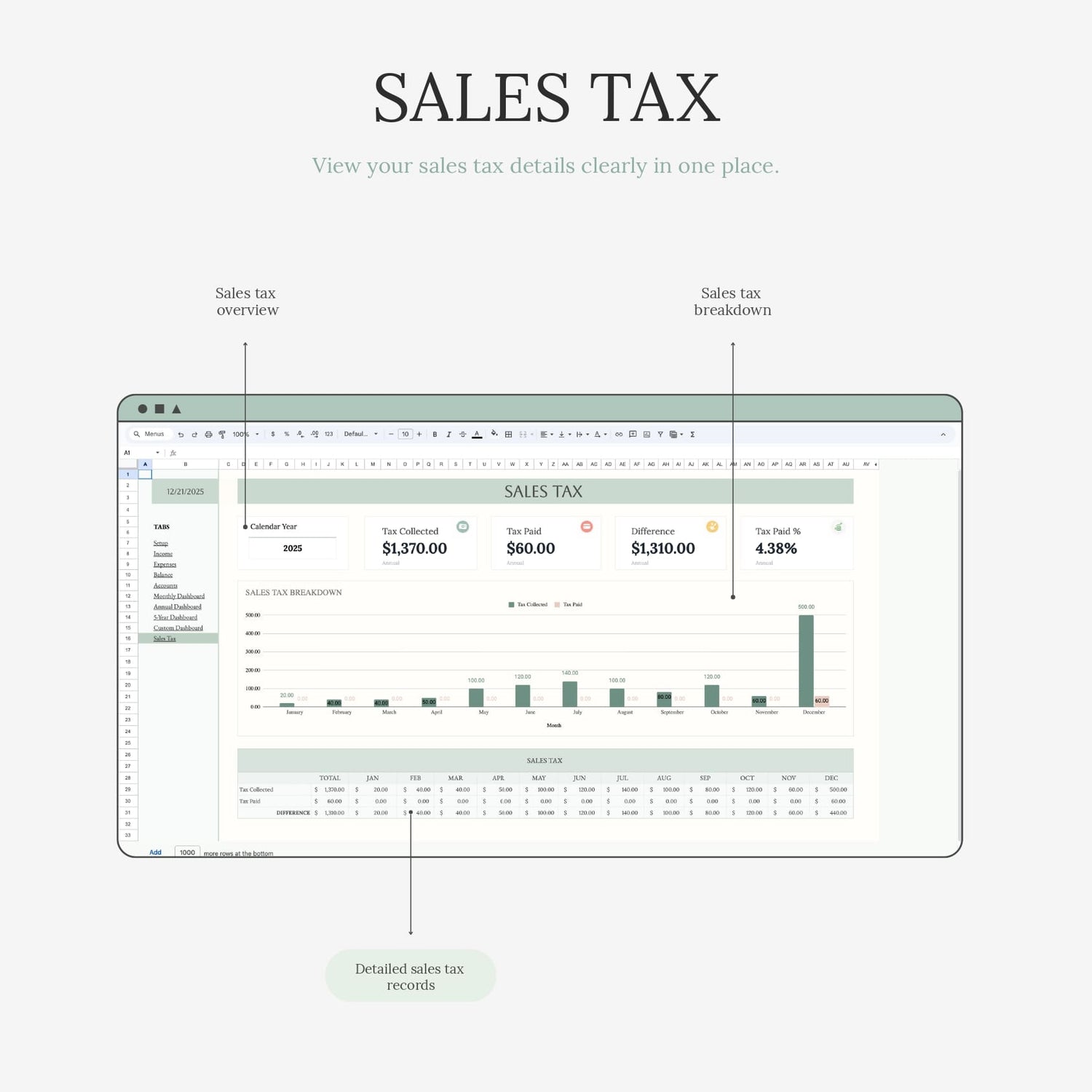 A clear overview of your sales taxes...